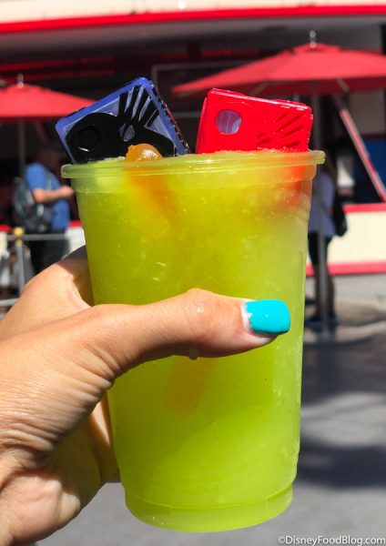 - Blood Orange Slush – Blood orange slush with a swirl of raspberry sauce and a glow cube