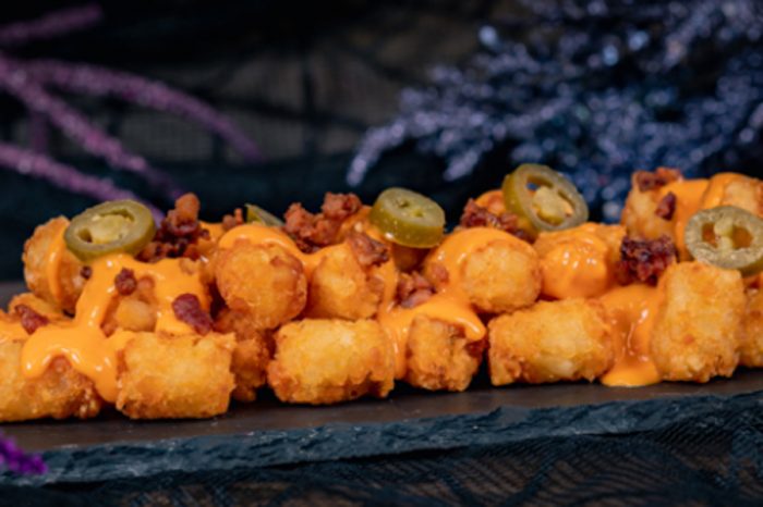 - Loaded Buffalo Chicken Fries – Steak fries topped with cheddar cheese, chicken tenders tossed in buffalo sauce, and celery bits drizzled with ranch (available at Oogie Boogie Bash)