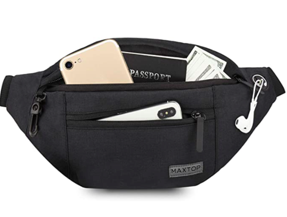 We like this simple fanny pack on Amazon that comes in lots of different colors for $13.77.