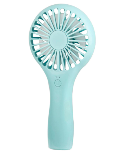The fan we like best from Amazon comes in blue, pink, black, or white and costs $15.49! Toss a couple extra batteries in your bag and youβre good to go!