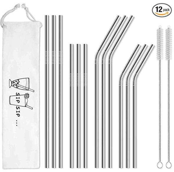 This 12-pack of reusable straws could be enough for your whole group, and it comes with a variety of sizes/shapes of straws, two cleaning brushes, and a drawstring container! The whole pack is $6.95 right now on Amazon!