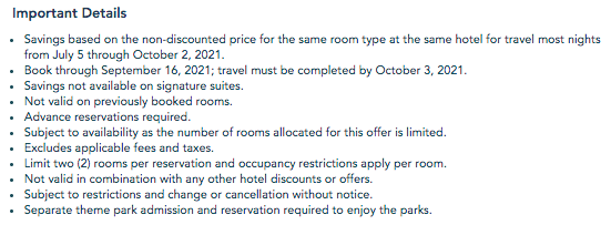 In order to get this discount you’ll need to book your stay by September 16th (that’s pretty soon!) and your travel must be completed by October 3rd, 2021.