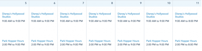 Disney’s Hollywood Studios will be open next week from 9AM-9PM from Sunday, September 5th through Friday, September 10th, and from 9AM-8PM on Saturday, September 11th.
