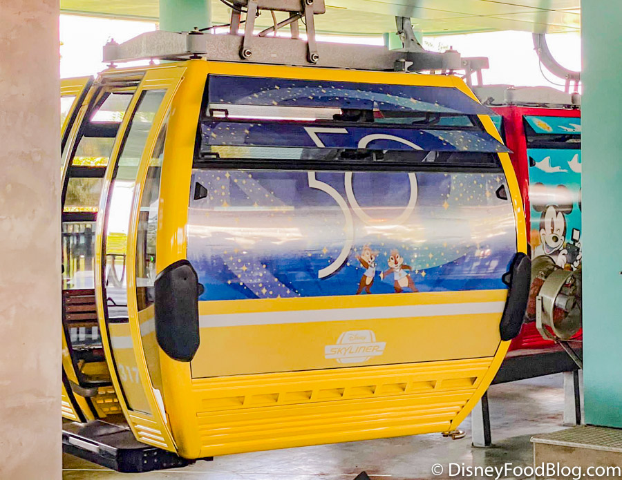 As we were waiting to catch the Skyliner today, we caught a glimpse of a brand new wrap featured on one of the Skyliner vehicles, and, you guessed it, it highlights the 50th Anniversary!