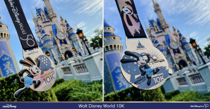 For this year’s 10k, you’ll earn the Oswald Medal! This medal features the vintage Disney character running (or is he hopping?) past Spaceship Earth in EPCOT! Plus, you can slide Oswald from left to right on one side of the medal — how cool is that?!