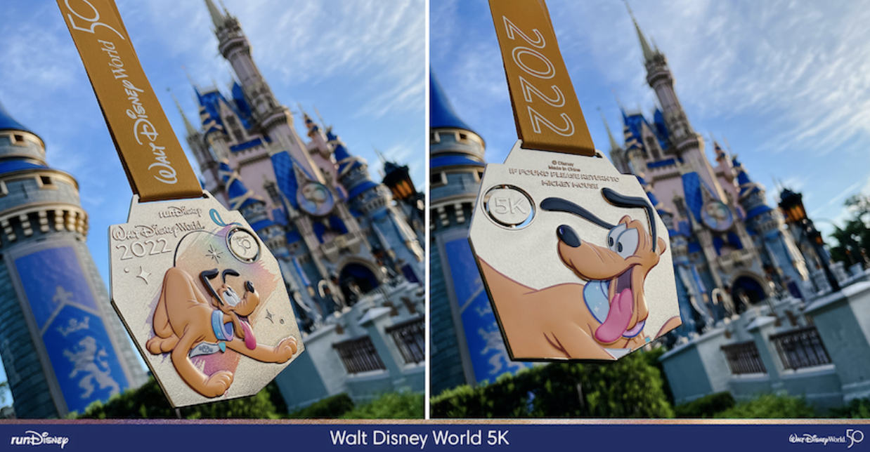 For this year’s 5k event, runners will receive a Pluto Medal! This medal features the adorable dog we all know and love along with a small spinnable element that says 50 (for Disney World’s 50th Anniversary) on one side and 5k on the other side!