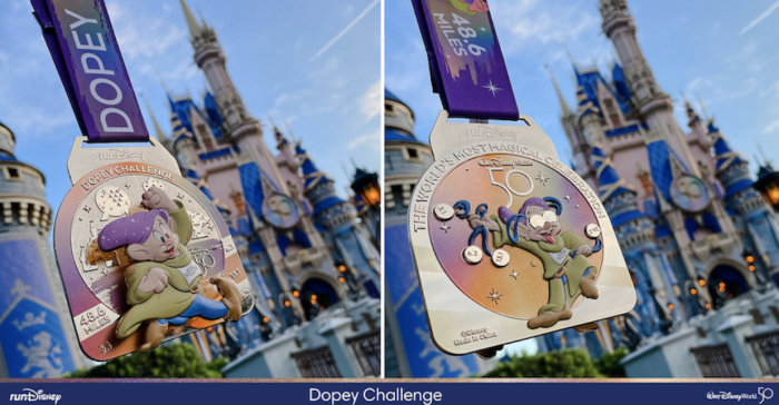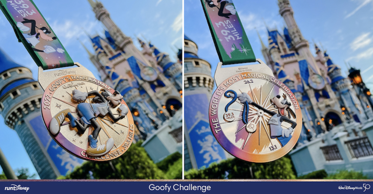 For this year’s Dopey Challenge, which is running all four different races during the Marathon Weekend, you’ll get the Dopey Medal! This one really brings the glitz and glam! Plus, if you finish the Dopey Challenge, you also get the Goofy Challenge Medal.
