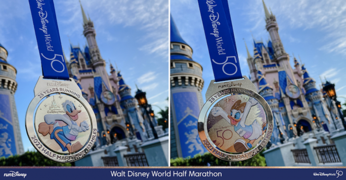 For this year’s Half Marathon, you’ll win a spinning medal with Donald Duck on one side and Daisy Duck on the other.