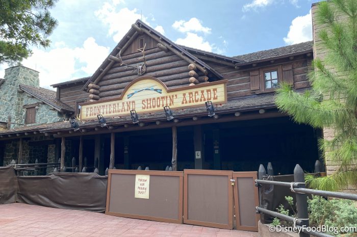 But, that wasn’t the only spot with a bit of a detour — we also spotted construction walls and tarp around the Frontierland Shootin’ Arcade.