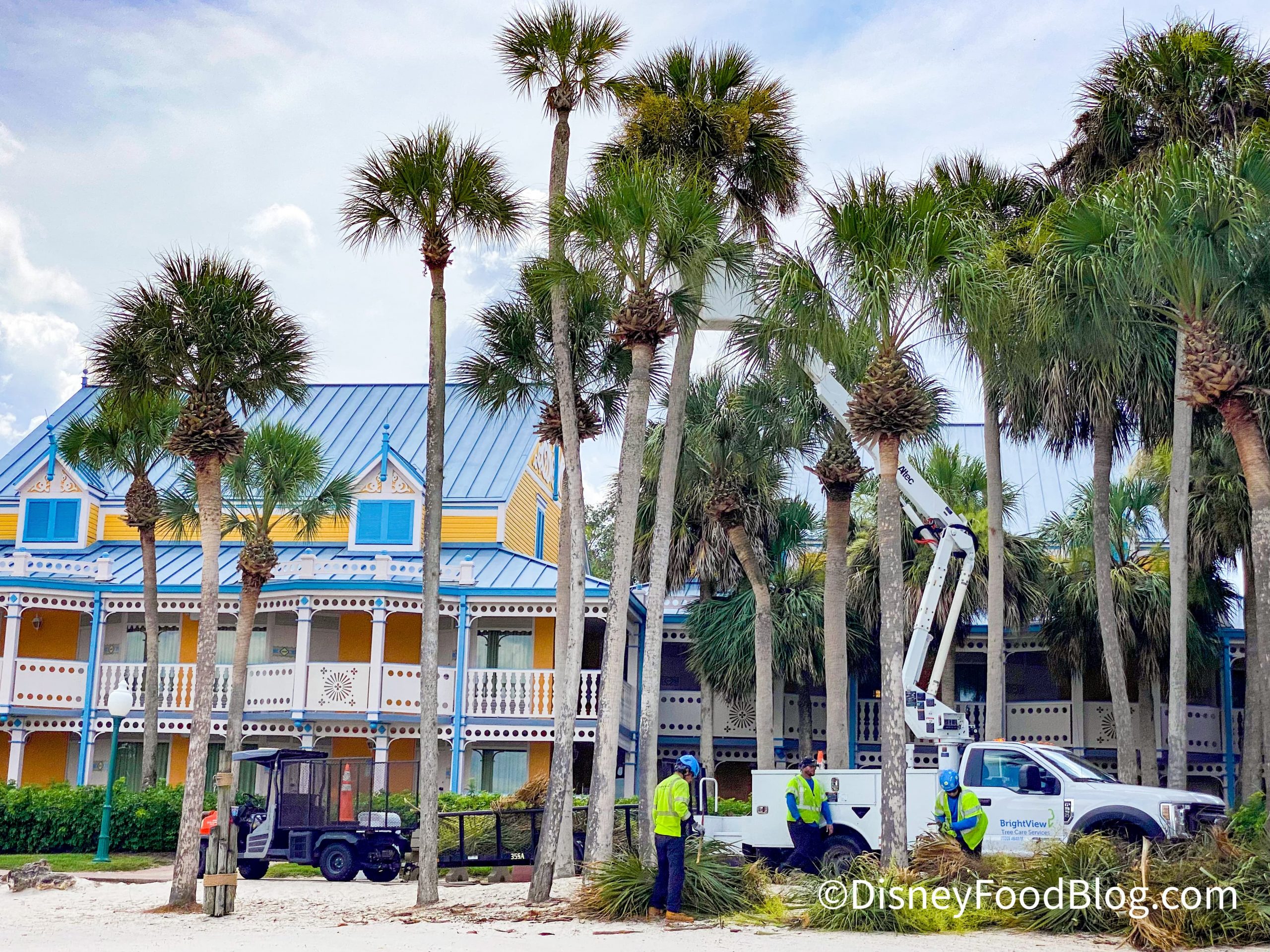 Our last stop was over at Disney’s Caribbean Beach Resort, where we spotted construction crews trimming trees near some guest buildings. Yes, even in Disney the trees need some upkeep, but projects like this normally tend to last only a few days and do not interrupt your resort stay much.