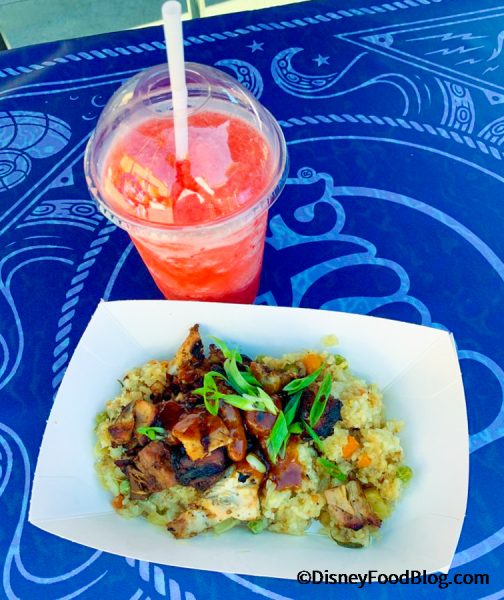 As far as that Fanta-taste goes, we found that the chicken tastes more like average BBQ chicken, and the pineapple flavor in the rice isn’t quite as strong as we expected. We only tasted the pineapple when we actually got a bite of pineapple, so the Fanta didn’t offer too much in terms of adding flavor! Although we enjoyed this, we still feel like there are tastier options for a quick service meal at Disney California Adventure.
