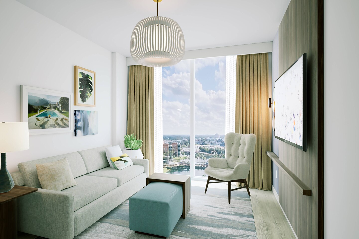 Many of the rooms will feature views of EPCOT or Disney’s Hollywood Studios, and the surrounding resort area. These could be especially fantastic to book considering the fact that EPCOT will soon have a new fireworks show you could watch straight from your room, and there are also fireworks currently offered at Disney’s Hollywood Studios. Views of two fireworks from one hotel?! That’s our kind of place!