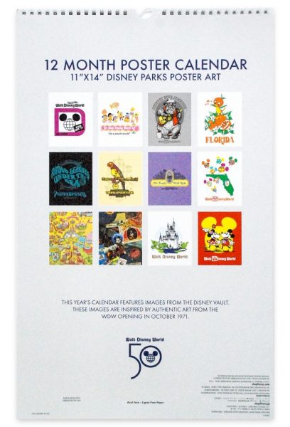 First up, we’ve got the Walt Disney World 50th Anniversary Poster Calendar 2022! The 12 month poster is spiral-bound and has extra large, removable art images (size 11″ x 14″).