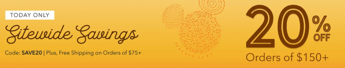 If you want to grab these and save some money, shopDisney has extended its sitewide savings offer. Today you can still get 20% orders of $150 or more plus free shipping on orders of $75 or more. But, this offer will be going away at the end of the day, so be sure to take advantage of it while you can!