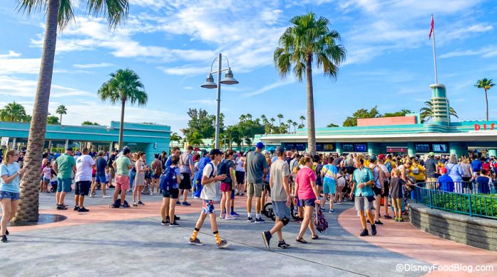 If you already have park tickets, you may upgrade to an Annual Pass (or, if you currently hold an Annual Pass, you can upgrade them to the new Annual Passes with updated renewal rates). This morning at Hollywood Studios, there we’re big crowds, with many people going to the ticket booths to buy or renew Annual Passes!
