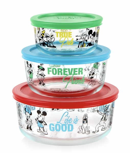 If you enjoy storing your food in Disney kitchenware, Pyrex just released a new collection of Mickey and Friends storage containers, such as this 6-Piece Pyrex Set of Round Mickey and Friends glass containers for $30.