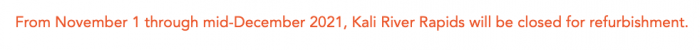 Update: Kali River Rapids is scheduled to reopen on December 16th, 2021.