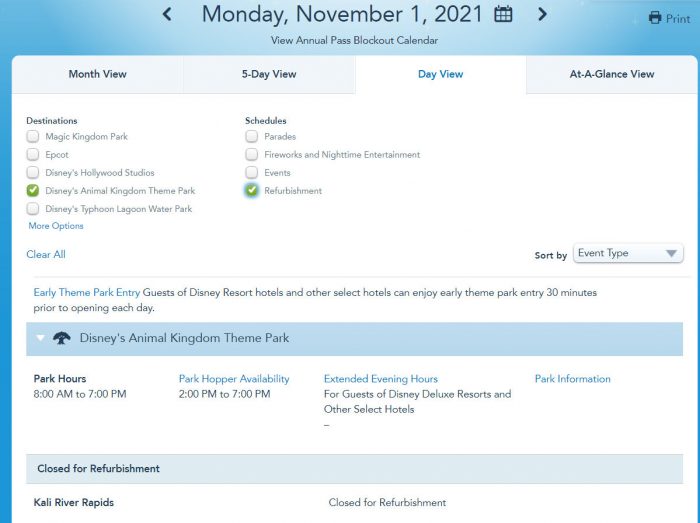 The ride is the water ride (SO much water) Kali River Rapids. When we checked Disney World’s refurbishment calendar, we noticed that the ride is set to close for refurbishment as of November 1st.