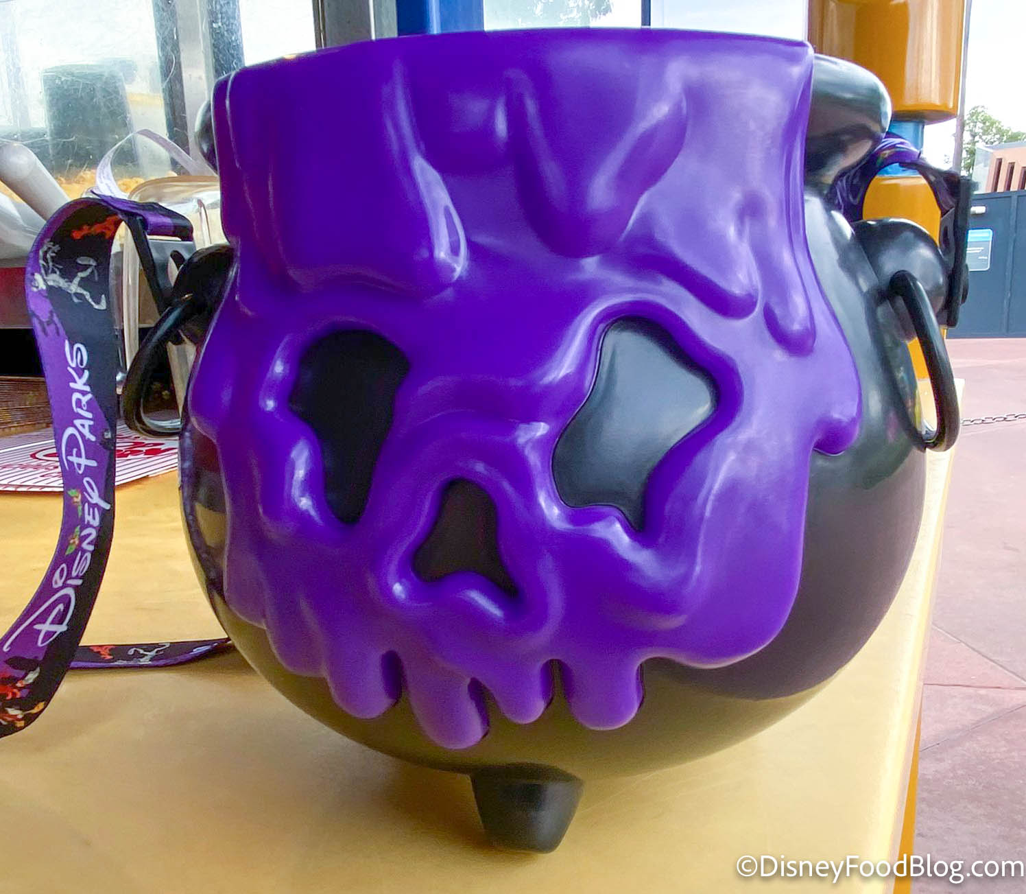 Weirdly, the cauldron we found being sold right now is purple and not green like the sign advertises, but either way we love it. It’s designed to look like the Evil Queen’s cauldron with the same creepy melting face we see on the poison apple in Snow White and the Seven Dwarfs.