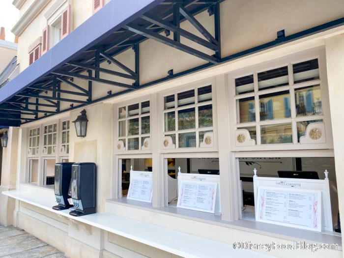 Both La Crêperie de Paris and its quick service window, Crêpes à Emporter, will be opening on October 1st, just in time for Disney World’s 50th anniversary celebration. We got a chance to check both out early, and if you’d like to read our review La Crêperie de Paris, you can do so here. But today, we’re checking out the quick-service window, Crêpes à Emporter.