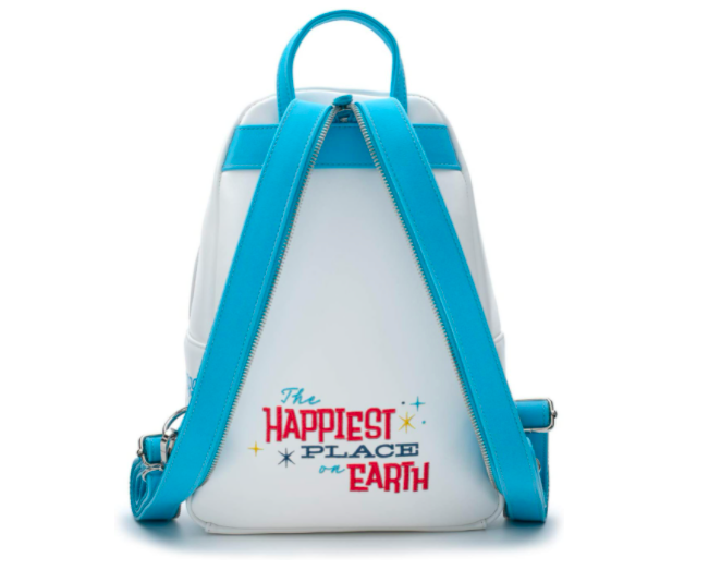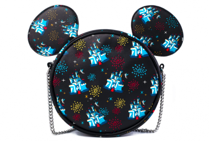 Like the crossbody bag, this backpack is celebrating Disneyland’s 65th anniversary with a Disney Castle decoration on the front and fireworks decorations behind it.