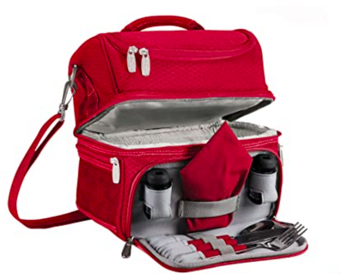 The lunch cooler is perfect for school days or a picnic. It comes with salt and pepper shakers, a stainless steel cutlery set, and a cloth napkin so you’ll be getting a very fancy lunch experience wherever you take it.
