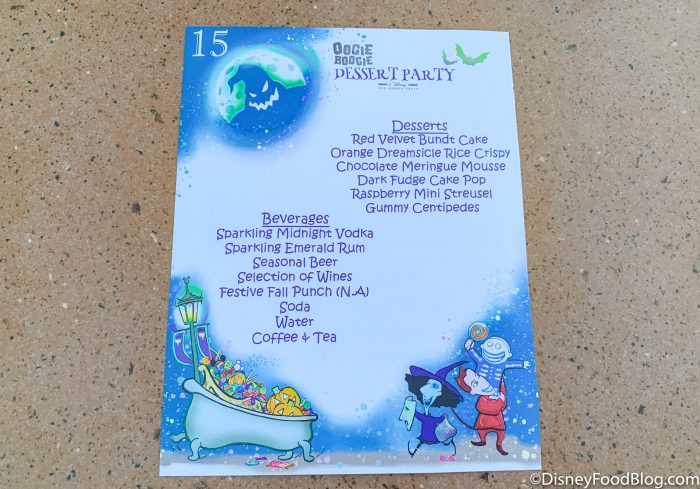 Again, keep in mind that one of the big perks of this dessert party is that it offers preferred seating for the Halloween-themed parade that takes place during Oogie Boogie Bash.