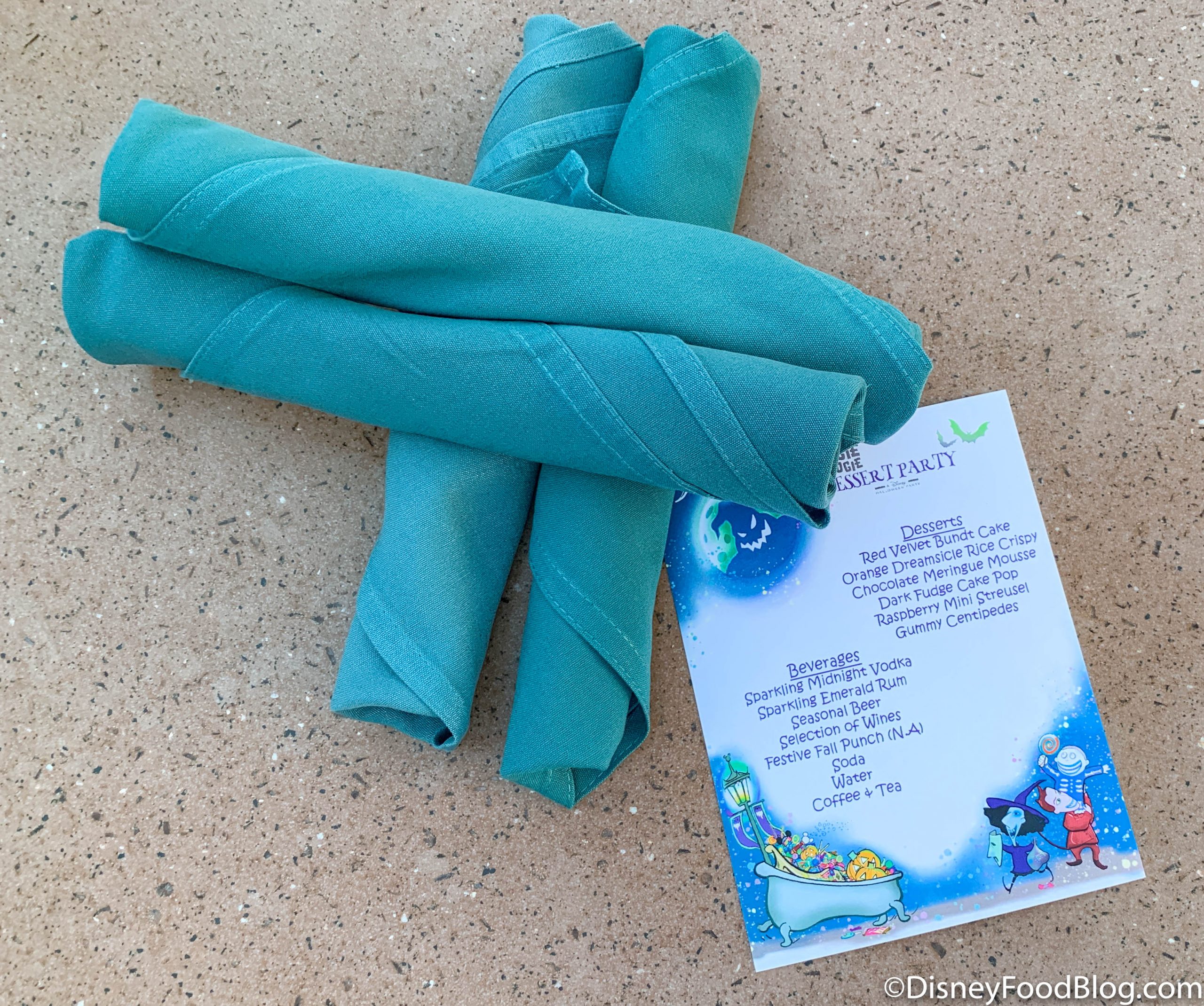 When we checked into the dessert party, we were taken to a table where there were napkins…