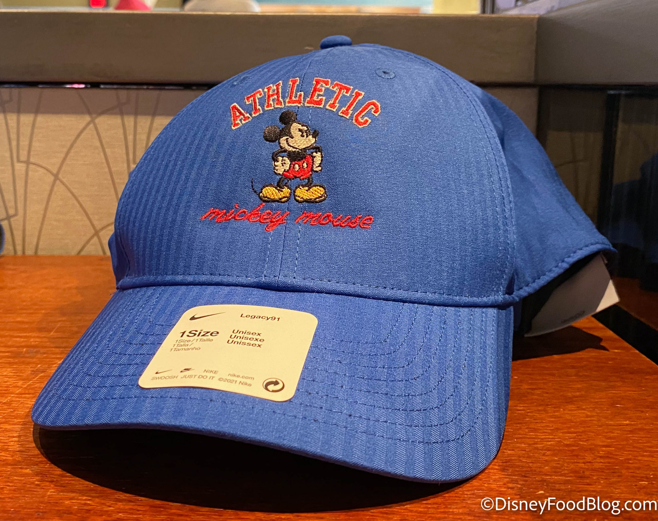 We also found a new blue Nike hat at Once Upon a Time, with a classic embroidered image of Mickey along with “Athletic” and “Mickey Mouse.”
