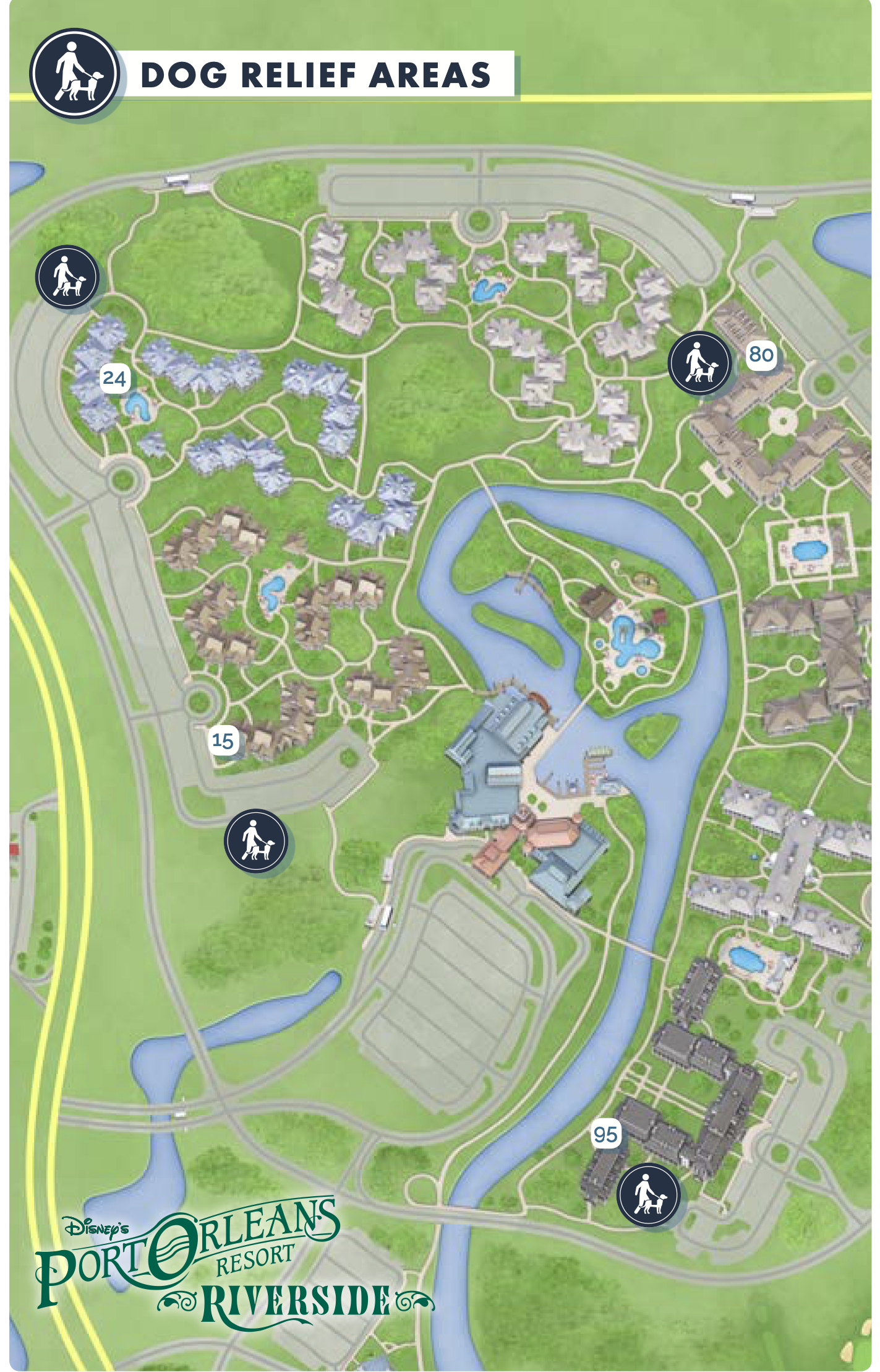 Because Moderate Resorts are often quite spread out, there’s a big range of locations for dog spaces at Riverside.