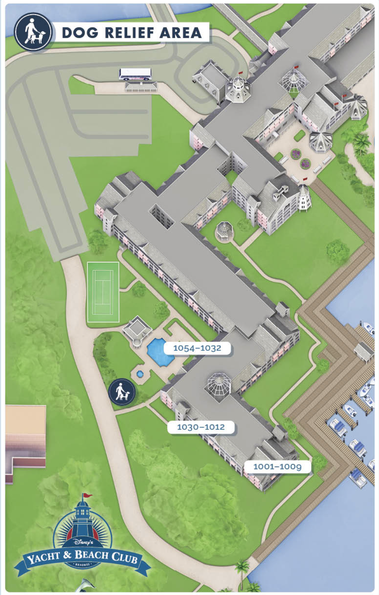 Yacht Club has one location for dog relief, so you may not have quite as much space for your doggo to explore as the other resorts.