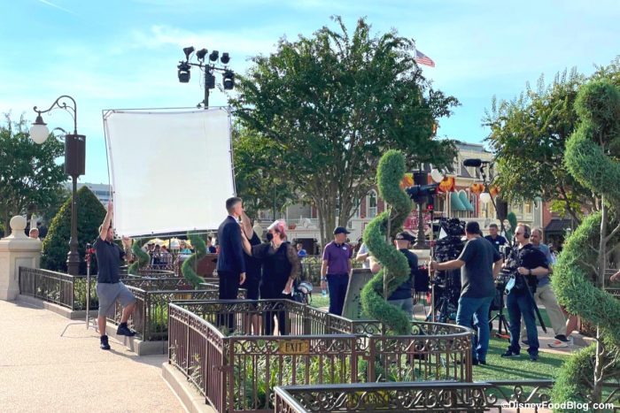 Today we spotted something extra special at the Magic Kingdom: the Chairman of Disney Parks, Experiences, and Products, Josh D’Amaro was filming something for the 50th Anniversary of Disney World! We recently spotted a HUGE stage in the park that was reportedly used for the big special coming to ABC on October 1st, but today there was even more filming.
