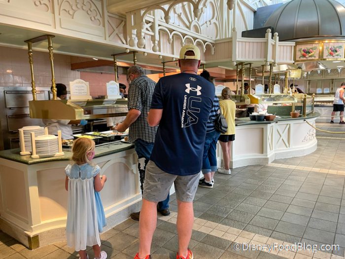 Also note that while you are up at the buffet stations getting your food, you must remain masked — masks are required at all indoor locations at Disney World unless you are actively eating or drinking.
