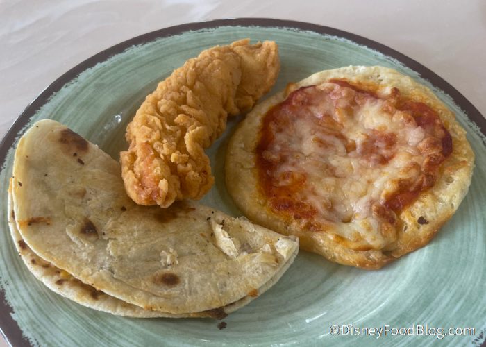 The Kids Buffet features some kid-pleasing treats like Crispy Chicken Breast Strips, Macaroni and Cheese, Miniature Beef Quesadillas, and Miniature Pizzas.