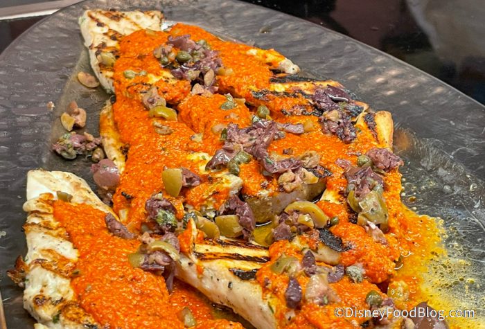 Looking for some good sides? There are plenty to choose from. We saw Peas, Winter Squash Ravioli, Olive-Caper Relish, Basmati Rice with Crispy Shallots, Roasted Wild Mushrooms, Cheesy Broccoli, Herb-Buttered Corn, Walt’s Mashed Potatoes, and Green Beans with Bacon and Onions.