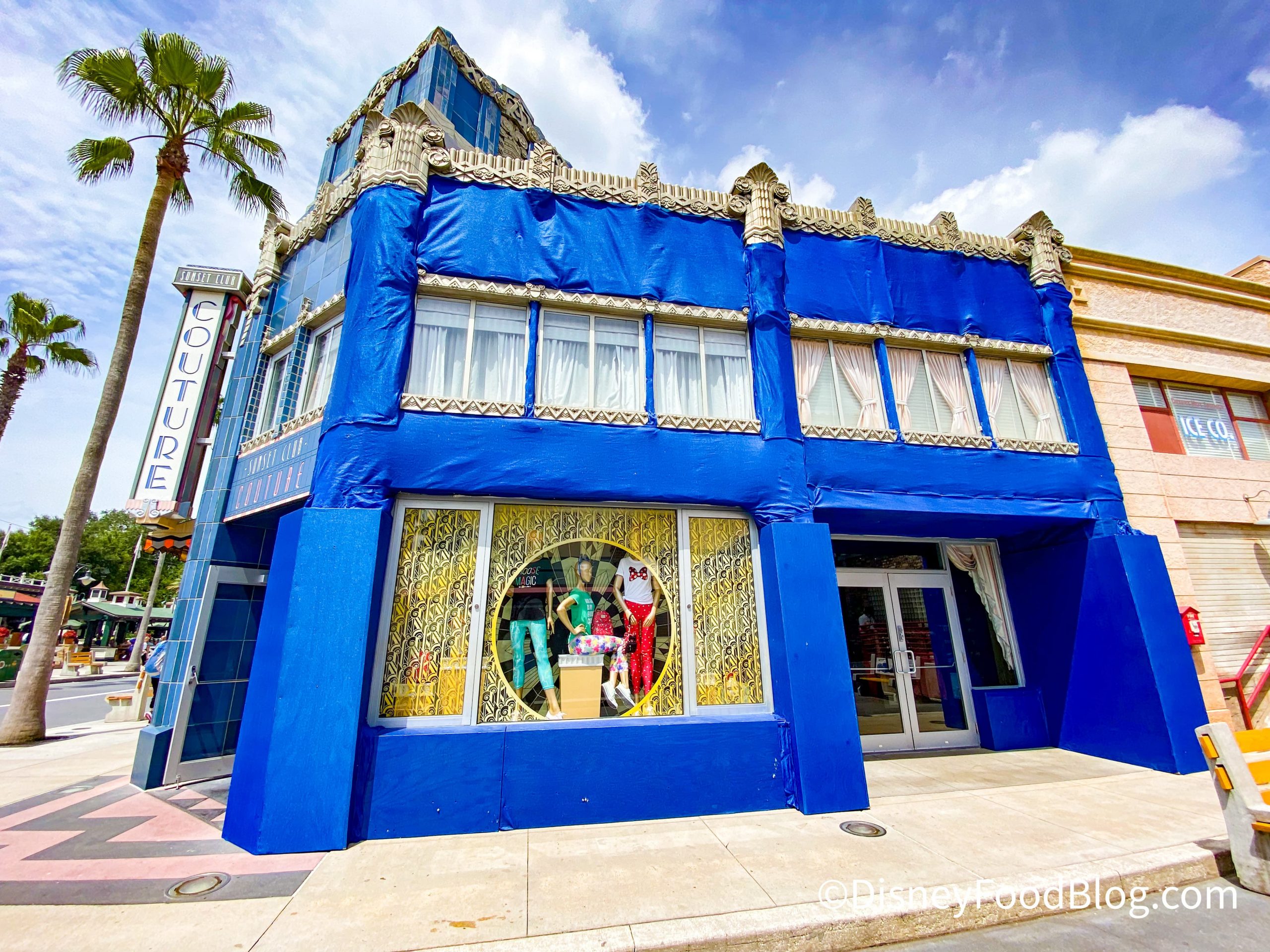 At Disney’s Hollywood Studios, the Once Upon a Time store was looking a bit different. Part of the building was covered in blue tarp — very incognito Disney.