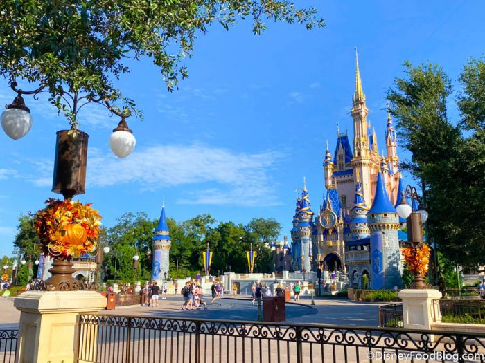 In lieu of the traditional Mickey Pumpkins, the light posts around Cinderella Castle are now decorated with pumpkins inspired by Cinderella’s pumpkin carriage!