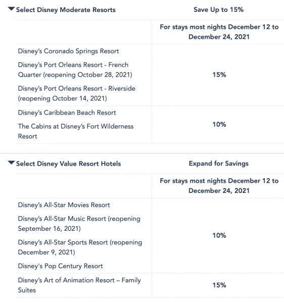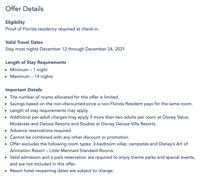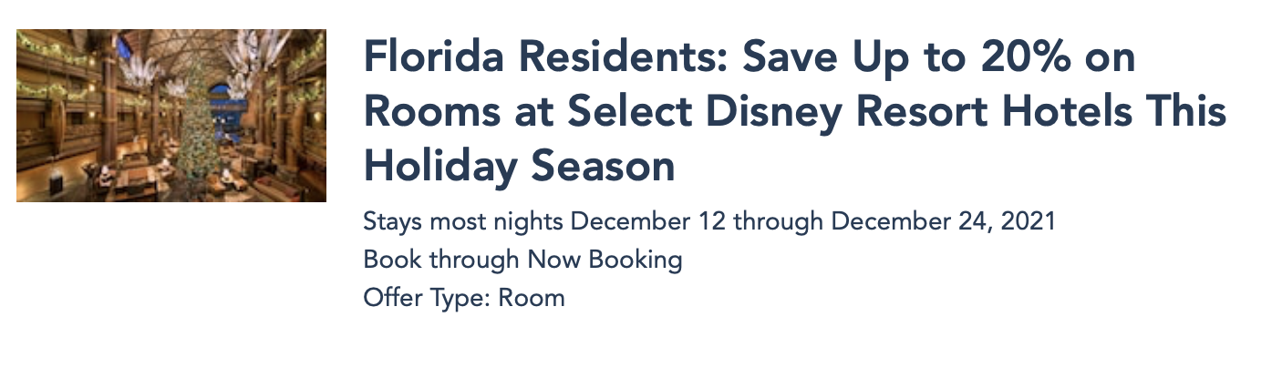 Florida Residents can save up to 20% on rooms at select Disney Resort hotels for most nights December 12th through December 24th!