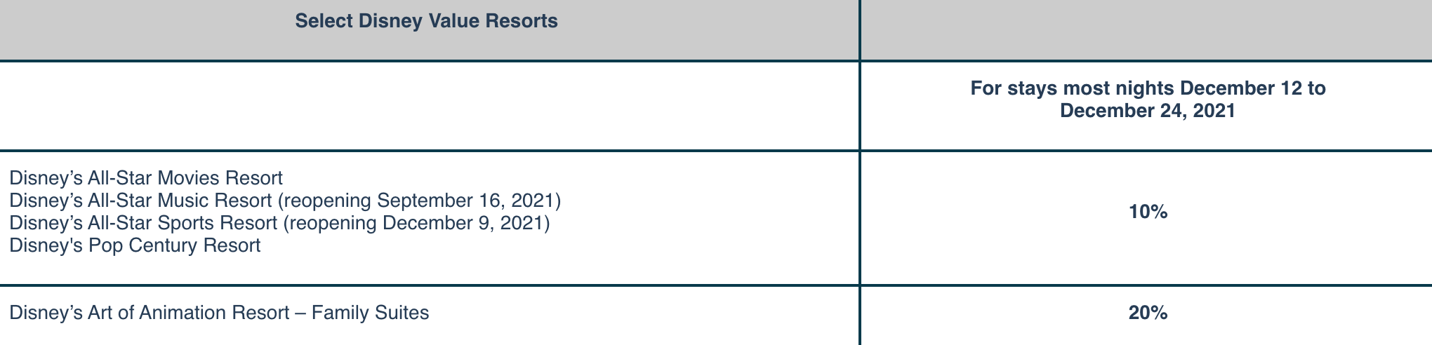 …and all of the All-Star Resorts as part of the Disney Value Resorts, amongst others! You can see the savings listed next to each resort category to find out how much you can score off your favorite resorts to visit!