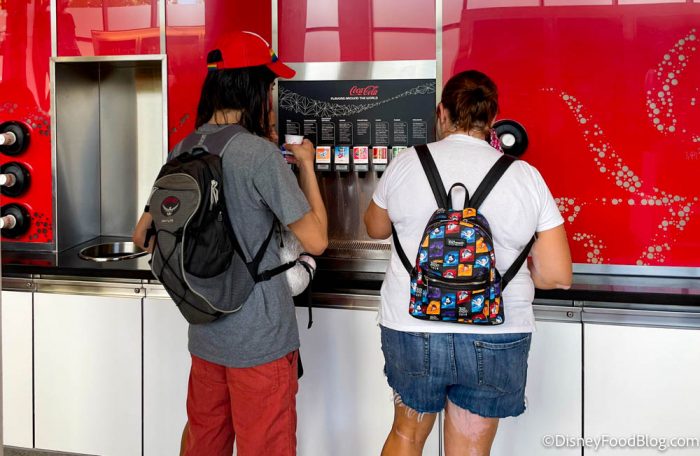 The way that you get your soda here is also slightly different. Previously, there were several soda machines and guests could walk between the various stations. Now, with new health and safety measures, the process has changed.