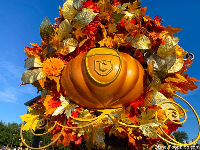 Also added for the 50th anniversary are these new Cinderella pumpkin wreaths around the Hub!