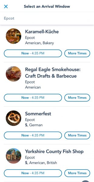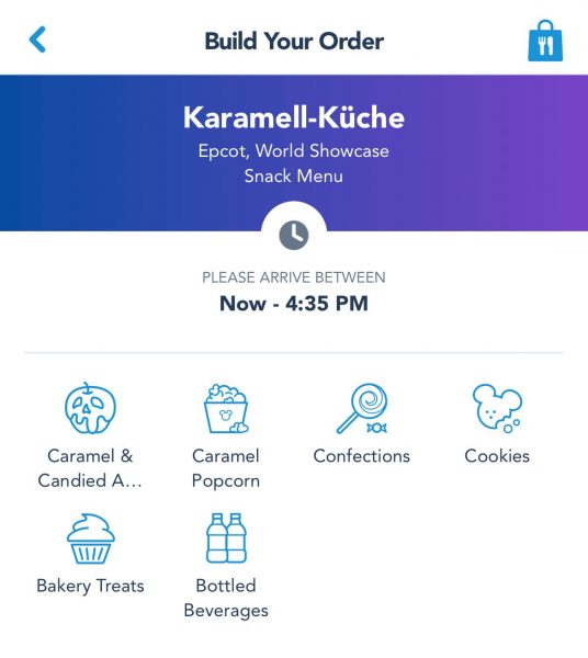 When we looked at the My Disney Experience app, we saw that Karamell-Küche does now appear as one of the available mobile order options.