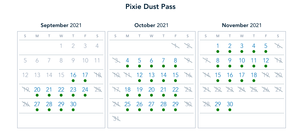 The situation is similar for Pixie Dust Pass holders, which have several days right near October 1st blocked out.