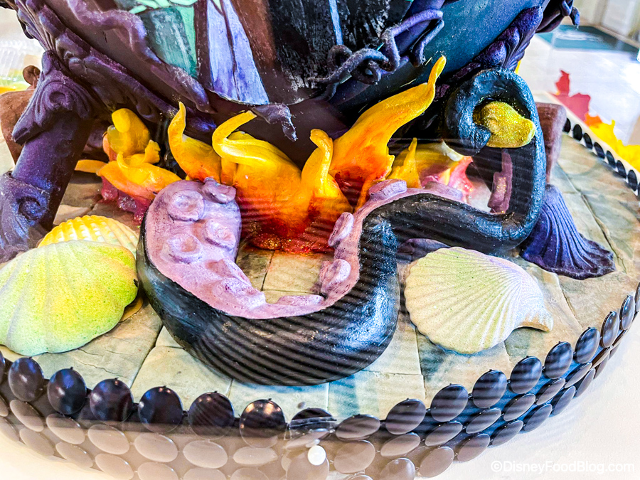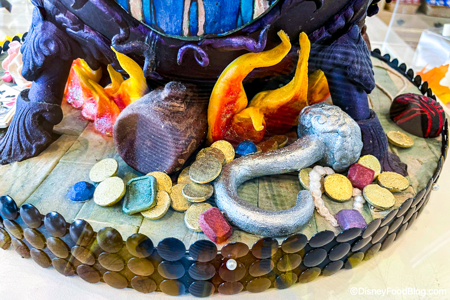 There are also details referencing several other villains, like this tentacle for Ursula!