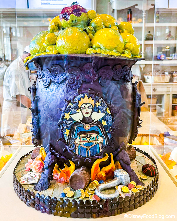 Up on the top of the sculpture, where a potion is clearly being brewed, there is a single red apple among the bubbles. Something tells us that apple is NOT safe to eat!