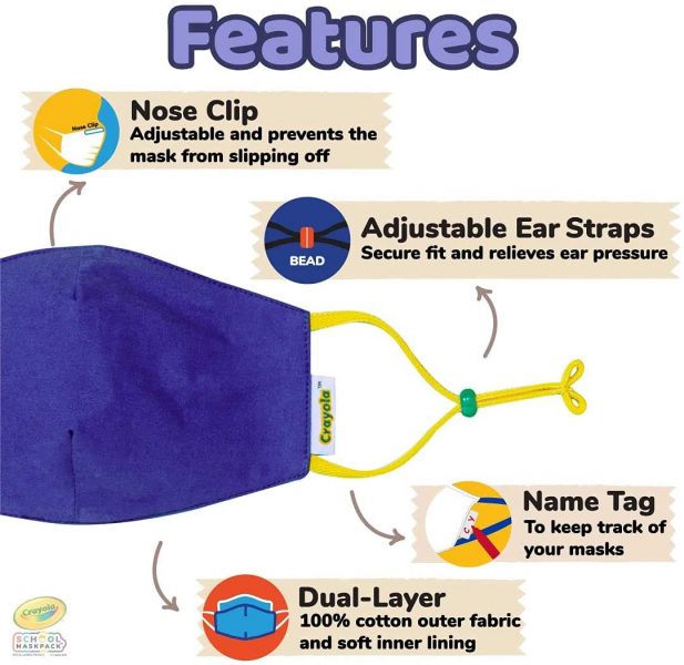 These masks come with a variety of options, again giving your kids the ability to match the mask to their outfit for the day or just pick their favorite color!