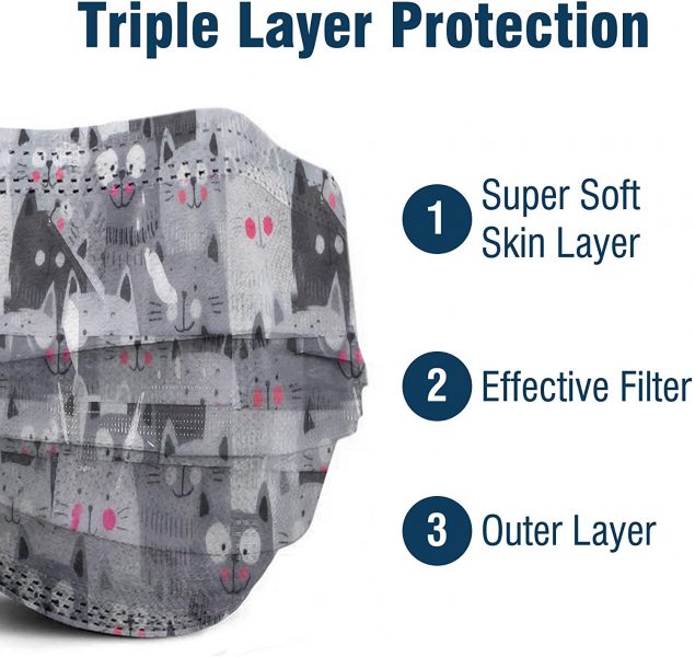 If you’re looking for a mask that’s protective but still lightweight, a disposable mask might be a good choice. There are lots of regular disposable masks that are blue or other solid colors. But, if you’re trying to really encourage your young ones to wear their mask, getting ones with a fun design could be the perfect thing!