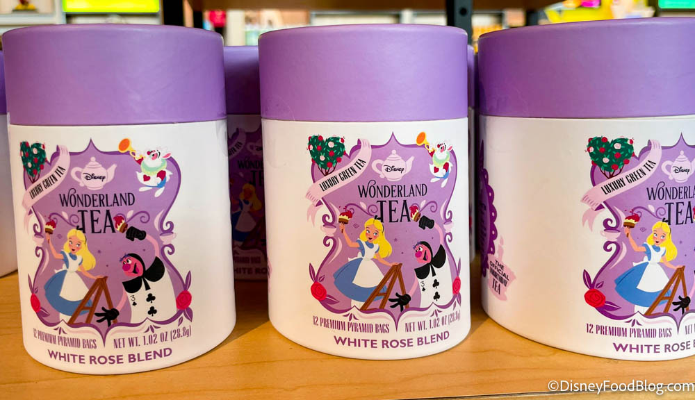 Toward the front of the Creations Shop, we saw a display of Wonderland Tea with new packaging. You can now get your tea in teacup-shaped boxes!