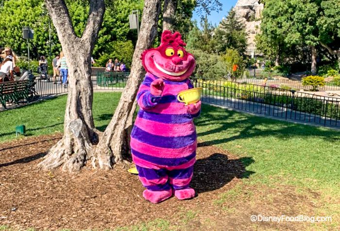 The Cheshire Cat brought his favorite teacup and saucer to come and say hello to guests in Fantasyland! We love how the teacup matches the famous spinning teacups at the Mad Tea Party attraction!