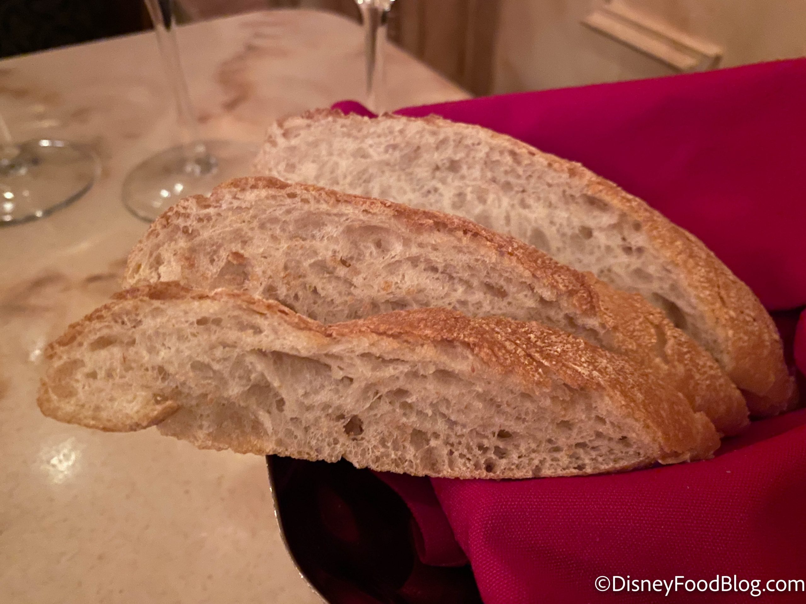 Your dinner begins with a sliced French bread basket, which is served alongside…